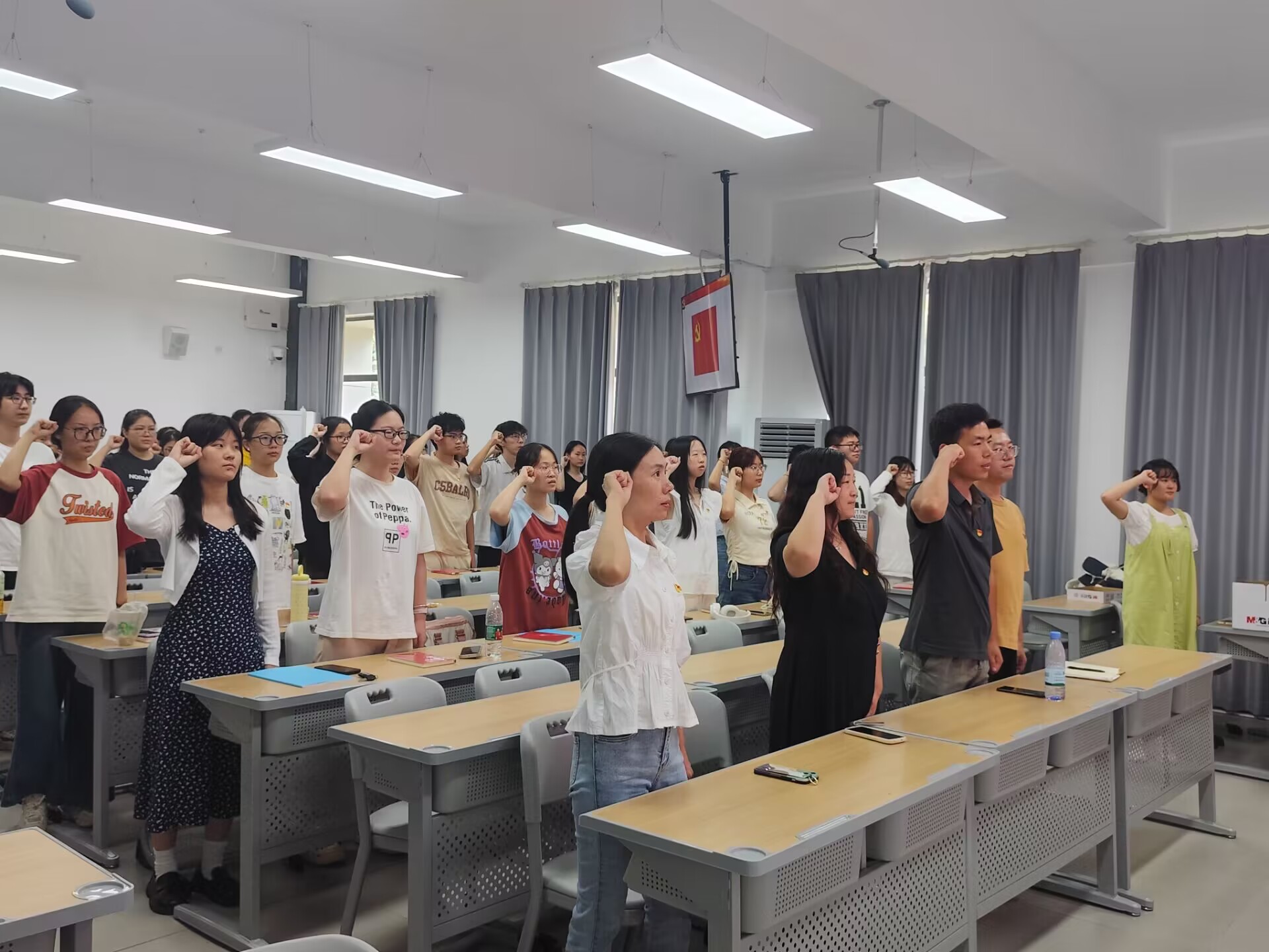 会议伊始,学生第一党支部书记高丽娥讲话,高老师强调党员应该更加巩固其党员的身份意识和责任意识,又讲解了一下后期党支部工作和分管工作调动情况。接下来,举行了我院学生党支部预备党员授徽仪式和入党宣誓,通过授徽仪式和入党宣誓,预备党员深刻感受到加入中国共产党的庄重与严肃,增强了对党组织的归属感和认同感,明确了自己肩负的责任和使命。