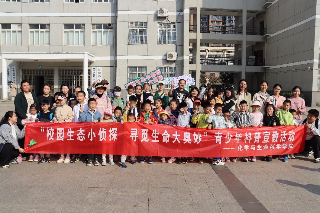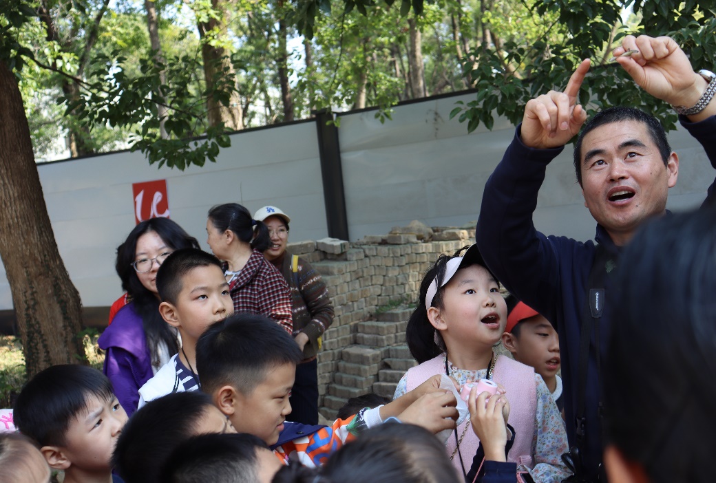 此次活动精心设计了植物和动物两条路线,由戴月老师和肖长生老师分别担任指导老师。小队员们在学院志愿者的带领下,从我院实验楼出发,依次经过各个活动点,最后到达行知广场。讲解员主要针对一路上所见的花草树木,以及所捕捉的昆虫和鸟类,向小队员们进行科普。