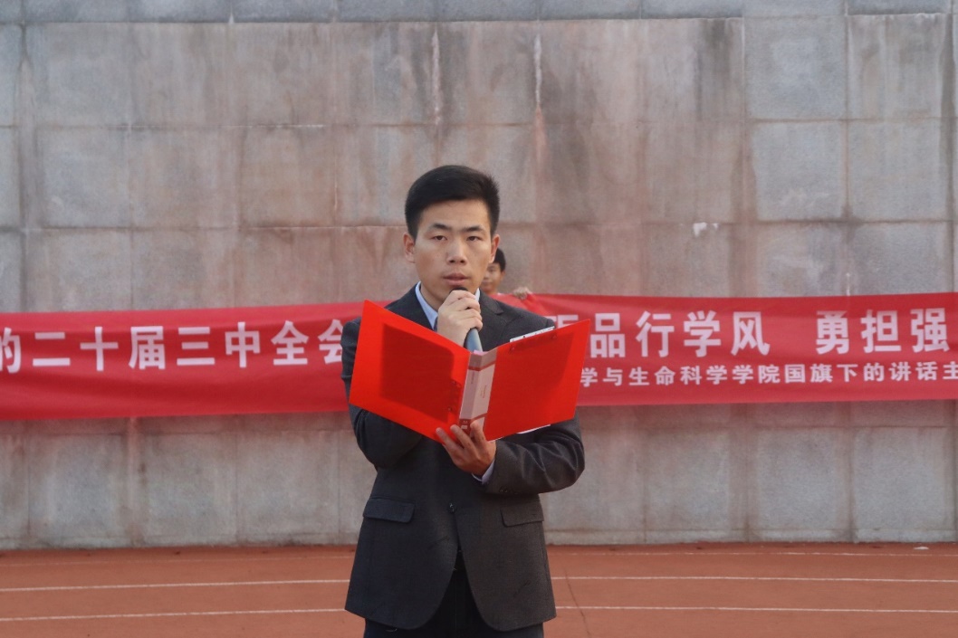 紧接着,学生代表吴昊旻发表激情洋溢的演讲,他从品德修养、学风建设和强国使命三个维度出发,号召同学们:一要加强自我修养,树立高尚道德情操;二要注重学风建设,强化团队合作,培养创新思维与实践能力;三要勇担时代重任,坚定理想信念,发挥专业优势,为国家的繁荣昌盛贡献力量。