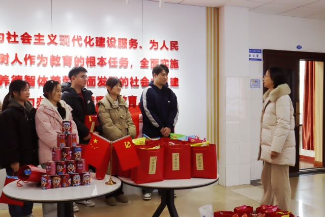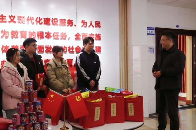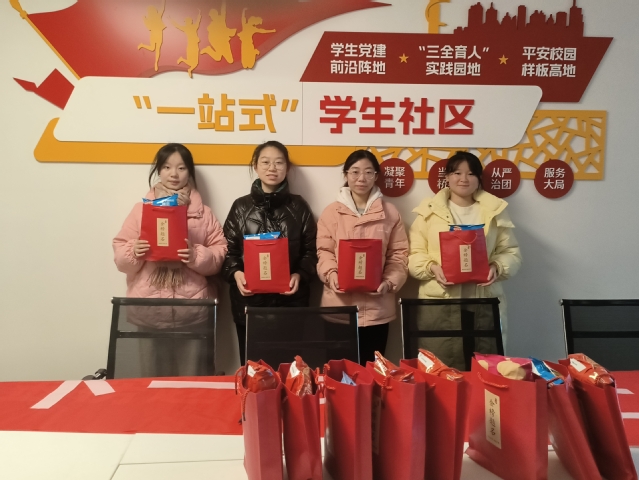 活动会场布置得温馨而充满斗志。整齐摆放的桌椅上,放着学院为考研学子们精心准备的慰问小礼品;墙壁上张贴着鼓励考研学子的标语“下一站,上岸”,营造出浓厚的学习氛围和积极向上的奋斗气息,充分展现了学院对考研学子们的重视与关怀。