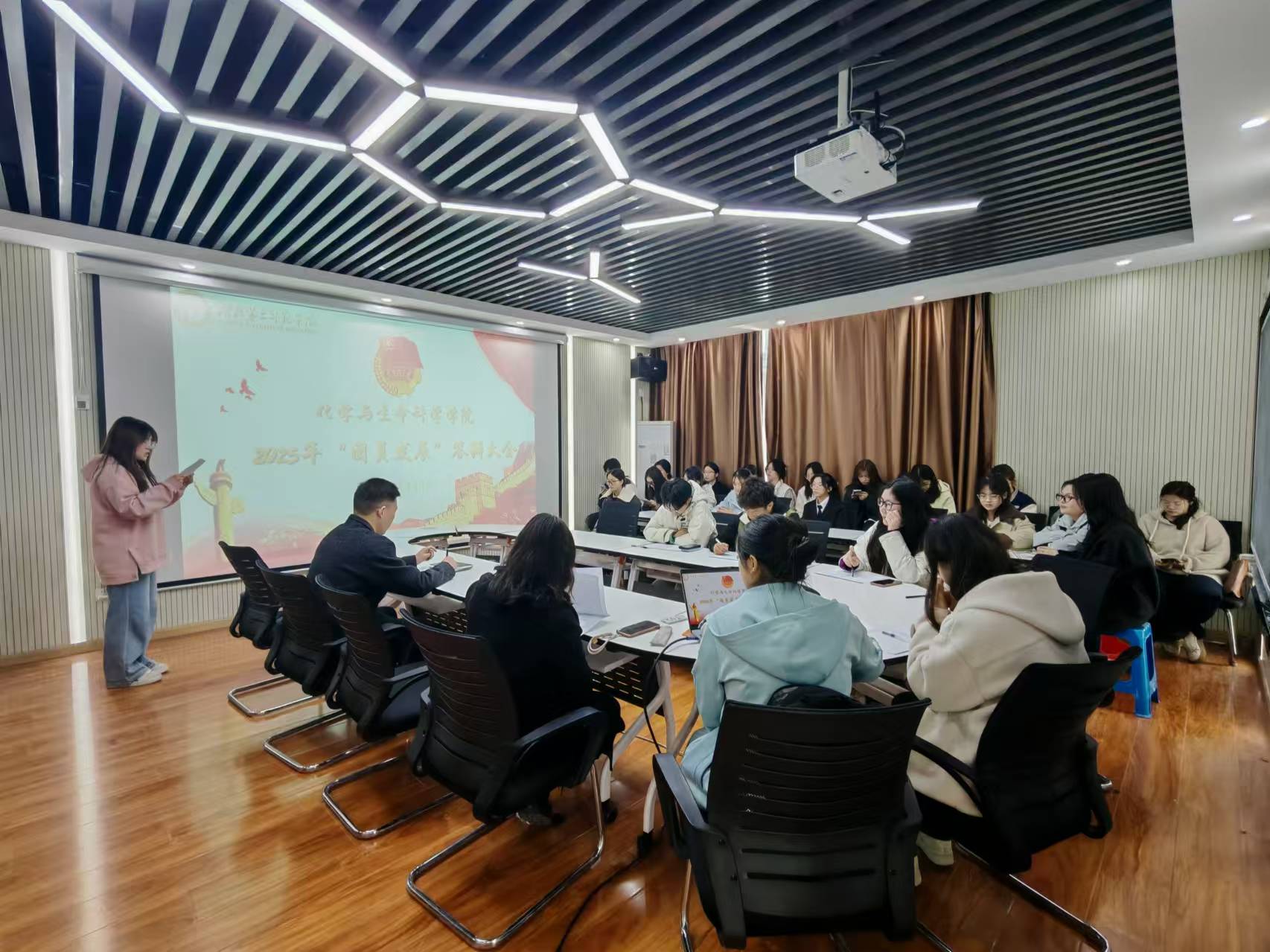 随后,21位参与答辩的同学依次上台,围绕自身经历与对共青团的深刻认识展开精彩陈述。他们有的在学术科研领域勤奋钻研,以扎实的专业知识和创新思维,在学科竞赛、实验室项目中屡获佳绩,展现出追求真理、勇攀高峰的科学精神;有的积极投身社会实践,参与社区服务、支教扶贫、环保公益等活动,用实际行动诠释责任担当,传递青春正能量;还有的在校园文化建设中发挥重要作用,组织各类文体活动,丰富同学们课余生活,展现出较强的组织协调能力和团队合作精神。