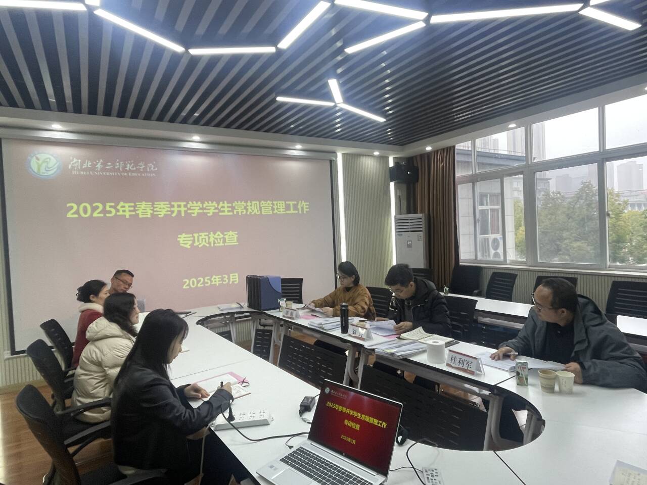 检查组通过听取汇报、查阅资料和座谈交流等形式,重点围绕学生返校管理、心理健康教育、宿舍安全隐患排查及毕业生教育管理等环节展开督导。学院从安全教育主题班会组织、重点学生群体关怀、宿舍网格化管理等方面进行了详细汇报。座谈会上,学工部对学院精细化、常态化的安全教育管理模式给予肯定,同时就优化心理健康预警机制、加强毕业生教育管理等提出改进建议。