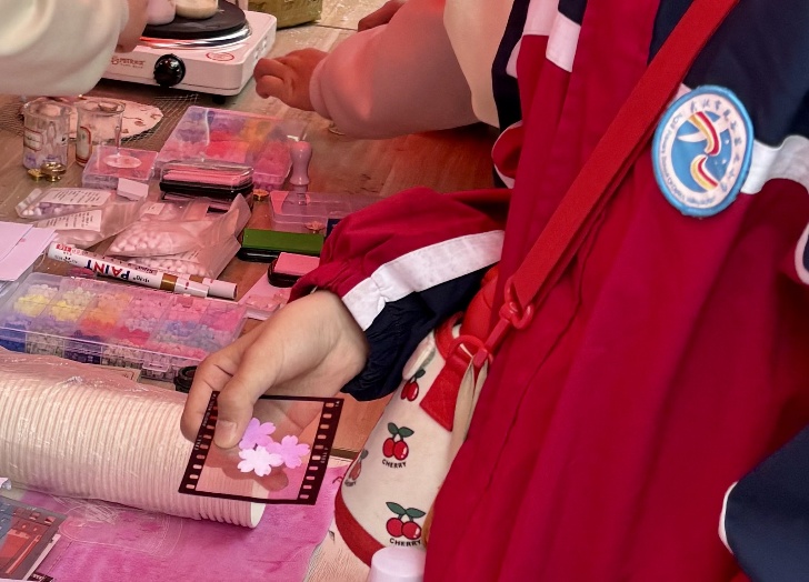 等到了感光感温变色樱花书签的小朋友好开心。