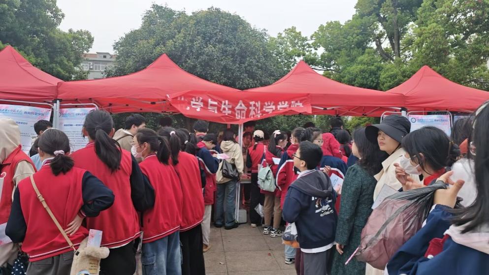 活动现场,化生学院领导班子全体成员与学生们亲切交流,对志愿者的奉献精神和活动准备给予高度认可,对展位项目创意表示肯定。