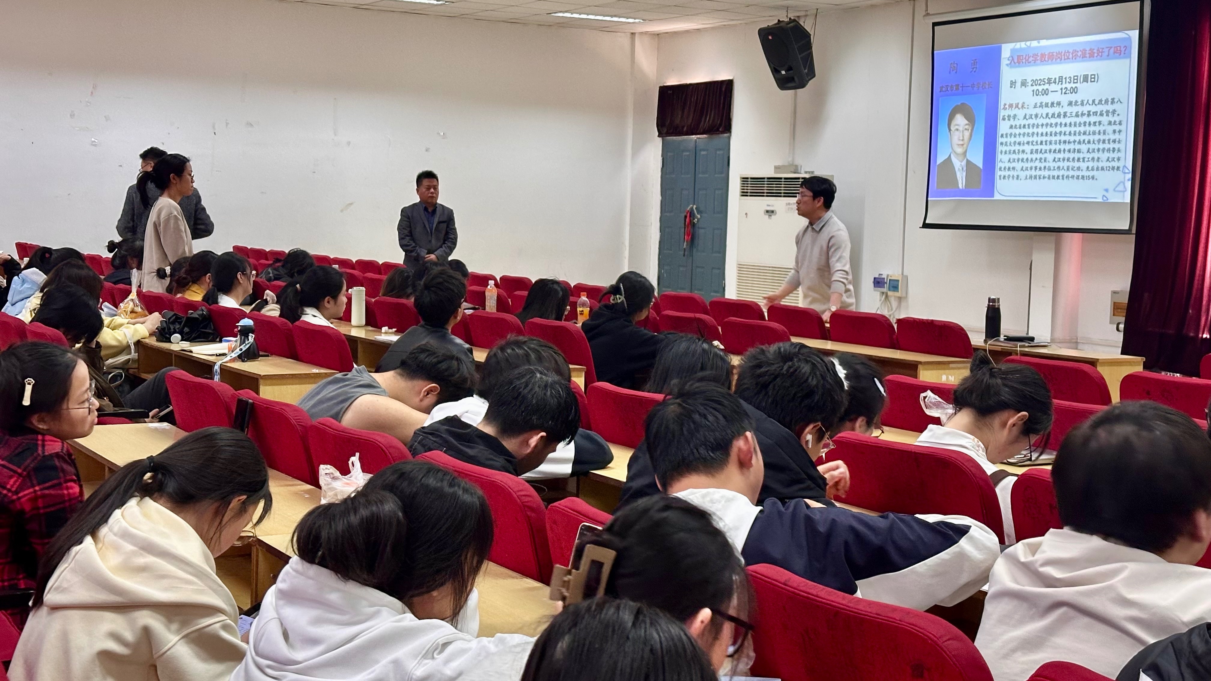 本网讯(通讯员 刘佳慧 钟嫄)4月13日上午10:00,“入职化学教师岗位,你准备好了吗?”专题讲座在老图书馆2号报告厅成功举办。武汉市第十一中学校长陶勇教授担任主讲,为有志于投身化学教育的准教师们带来了一场干货满满的入职指导。