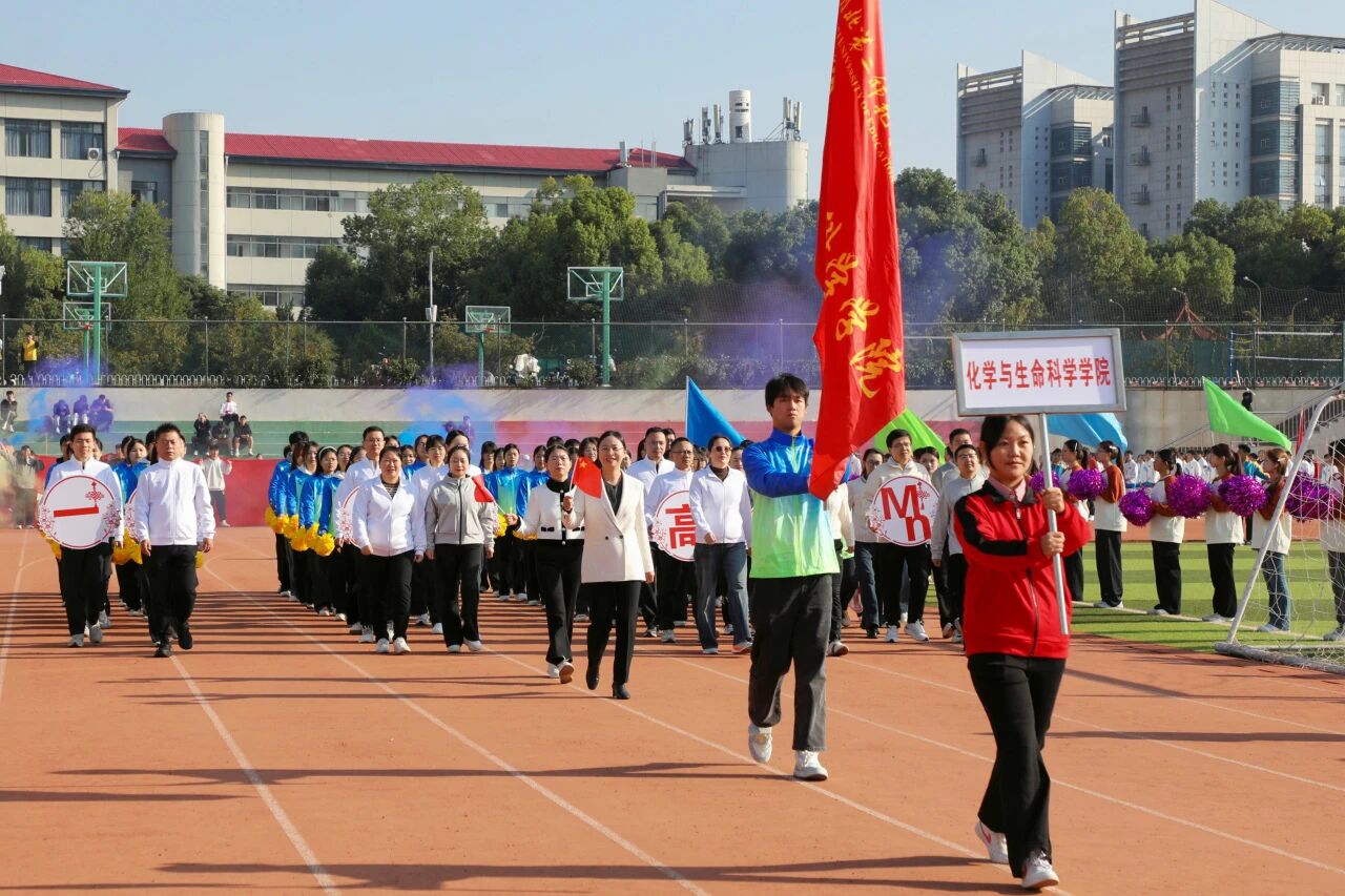 开幕式上,我院领导班子和同学身着统一服装步伐整齐,创意独特,“‘锌’(心)燃科研火,‘镁’(美)耀化院光,‘锂’(力)破万重难,‘钾’(加)速向荣光”的口号更是喊出了青春豪情。