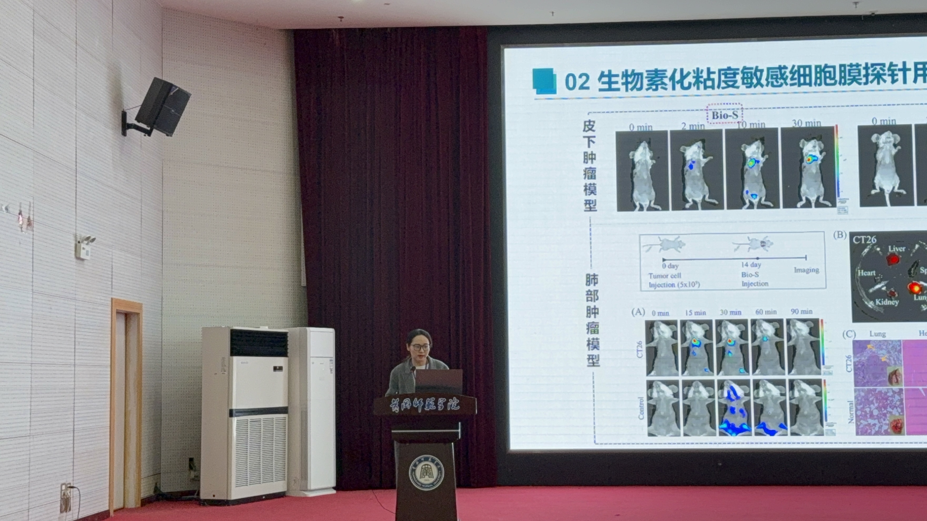 在青年报告环节,我院李倩华博士以《细胞膜荧光探针的构建及其肿瘤诊疗一体化研究》为题做汇报,聚焦肿瘤诊疗领域的技术瓶颈,系统阐述细胞膜荧光探针的设计原理、制备工艺及应用效果,其创新性研究思路与实践成果获得与会专家的广泛关注与高度评价,充分展现我院青年教师的科研实力与创新活力。