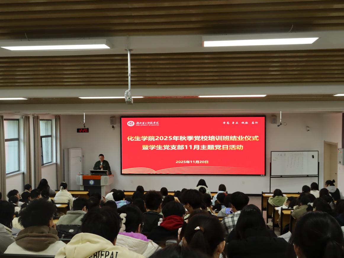 本网讯(通讯员 戴梦涵)为巩固党校培训成果,强化党员党性修养,推动理论学习走深走实,11月20日,化生学院2025年秋季党校培训班结业仪式暨学生党支部11月主题党日活动顺利举行。学院学生党支部全体党员、秋季党校培训班学员参加活动。