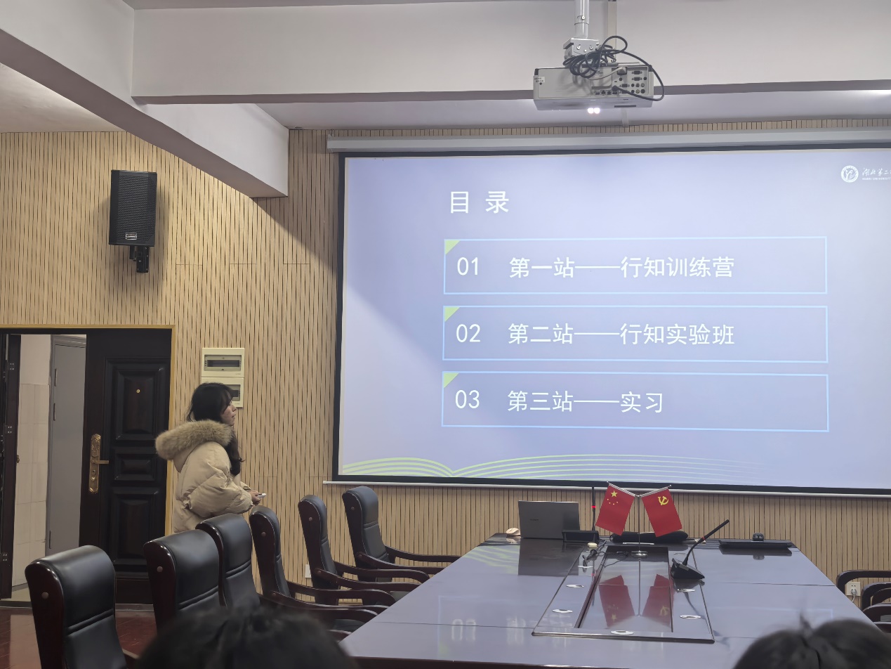 随后,来自行知实验班的学生代表分享了她们在教学技能培养、教育实习实践以及初步备考过程中的亲身经历与心得体会。她们从同龄人的视角,生动讲述了理论学习与教学实践相结合的重要性,以及如何在大学期间提升自身综合素质,为未来投身教育事业夯实基础。