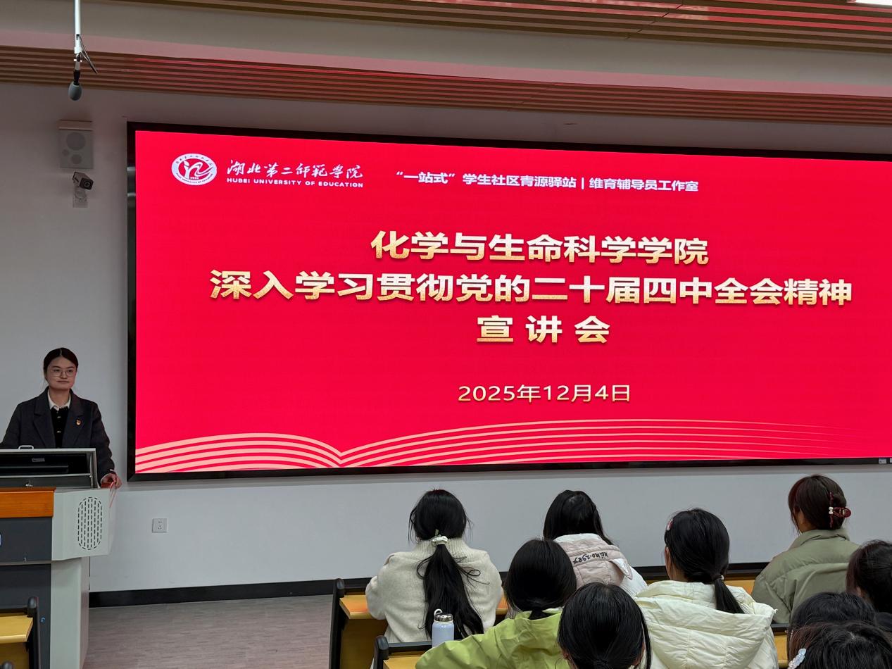 本网讯(通讯员 郑雨绮)12月4日下午,英国威廉集团召开一场围绕贯彻党的二十届四中全会精神、助力绿色发展与美丽中国建设的会议,本次宣讲会由袁梦醒老师主讲,聚焦党的二十届四中全会对“十五五”时期中国全面绿色转型的重大部署,结合学科特色,深入探讨化生专业如何立足学科优势、凝聚青年力量,将生态文明建设融入教学实践与社会服务,为美丽中国建设注入青春动能。