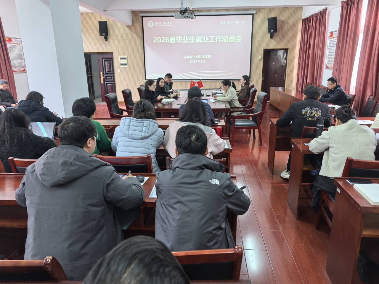 同时,会议对“全员促就业”工作进行了再动员,号召全体教职工积极挖掘校友资源与合作单位资源,主动走出去开拓就业市场,广泛搜集并精准推送就业岗位信息,形成全员参与、齐抓共管的良好氛围,为2026届毕业生更充分、更高质量就业奠定坚实基础。